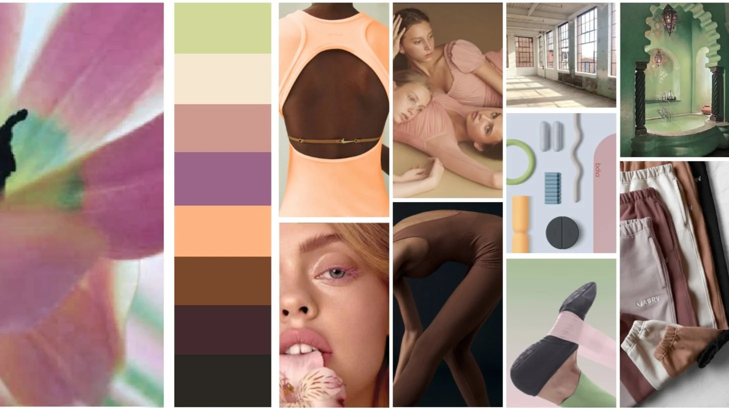 A SOFT FEMININITY MIXED WITH RETRO SPORT SILHOUETTES WILL INSPIRE THE GUEST TO FIND MOVEMENT AND JOY. EASY BODYSUITS, MODERN LAYERING PIECES, AND ELEVATED LEGGINGS WILL MELD TOGETHER WITH DETAILS OF CUT WORK, CURVED SEAMS, AND THIN TAPINGS.